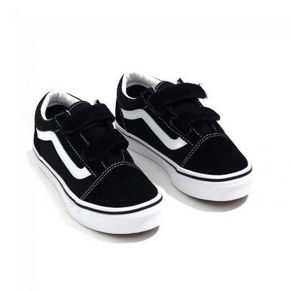 Giống như kiểu dáng giày của người lớn, vẫn là đường sọc jazz, nhưng giày Vans Kids’ Old Skool lại được thiết kế chiếc quai dán cực tiện dụng thay vì phong cách cột dây như mẫu giày của người lớn như ban đầu. Điều này cũng giúp bé dễ dàng và nhanh chóng hơn trong việc mang giày, cũng giúp tiết kiệm được thời gian và không hề làm khó bé.