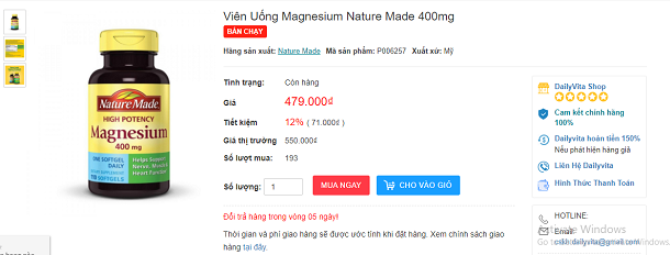 Hiện nay, viên uống Magnesium Nature Made đang được phân phối ở nhiều hiệu thuốc trên cả nước. Bên cạnh đó, bạn hoàn toàn có thể tìm mua tại các sàn thương mại điện tử uy tín. Ngoài ra, bạn hoàn toàn có thể chọn mua viên uống Magnesium Nature Made tại siêu thị sức khỏe Dailyvita.vn của chúng tôi. Chúng tôi luôn cam kết đem đến cho khách hàng sản phẩm chính hãng 100% với mức giá thành tốt nhất.