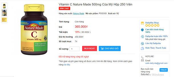 - Sản phẩm: Vitamin C Nature Made 500mg