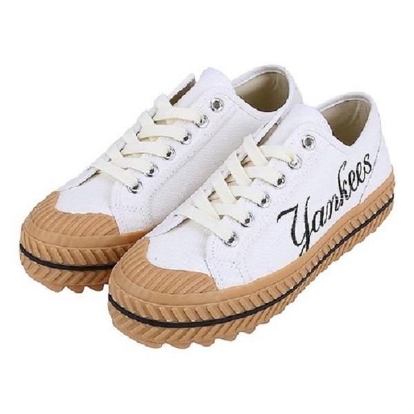 - Logo “Yankees” được in trên nền vải trắng tin khôi với font chữ đặc biệt tạo điểm vô cùng táo bạo cho đôi giày.